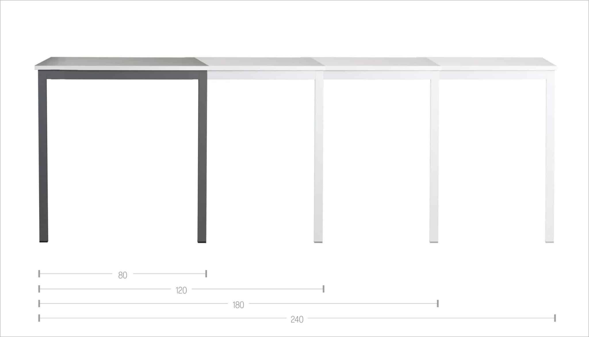 Le misure standard sono 80×80, 60×100, 70×110, 80×120, 80×180 e 80×240, ma non devi preoccuparti se queste non si adattano: sappiamo che ogni spazio è unico, quindi siamo in grado di offrire dimensioni personalizzate, variando in lunghezza da 60 a 240 cm e in profondità da 60 a 100 cm, con altezze che vanno da 45 a 110 cm.