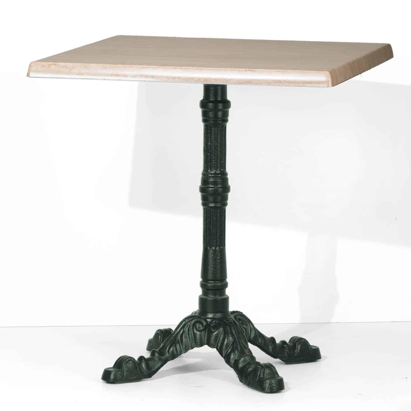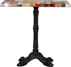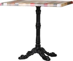 Il tavolo Bistrot 4 piedi con base e stelo in fusione di ghisa è un classico del design, adatto per ambienti di ristorazione e bar. La struttura è composta da una base a stelo in fusione di ghisa, resistente e robusta, disponibile in 28 colorazioni diverse che si adattano ad ogni esigenza di arredamento. Il piano del tavolo viene fissato tramite una piastra a crociera in pressofusione di alluminio posta sulla sommità dello stelo.