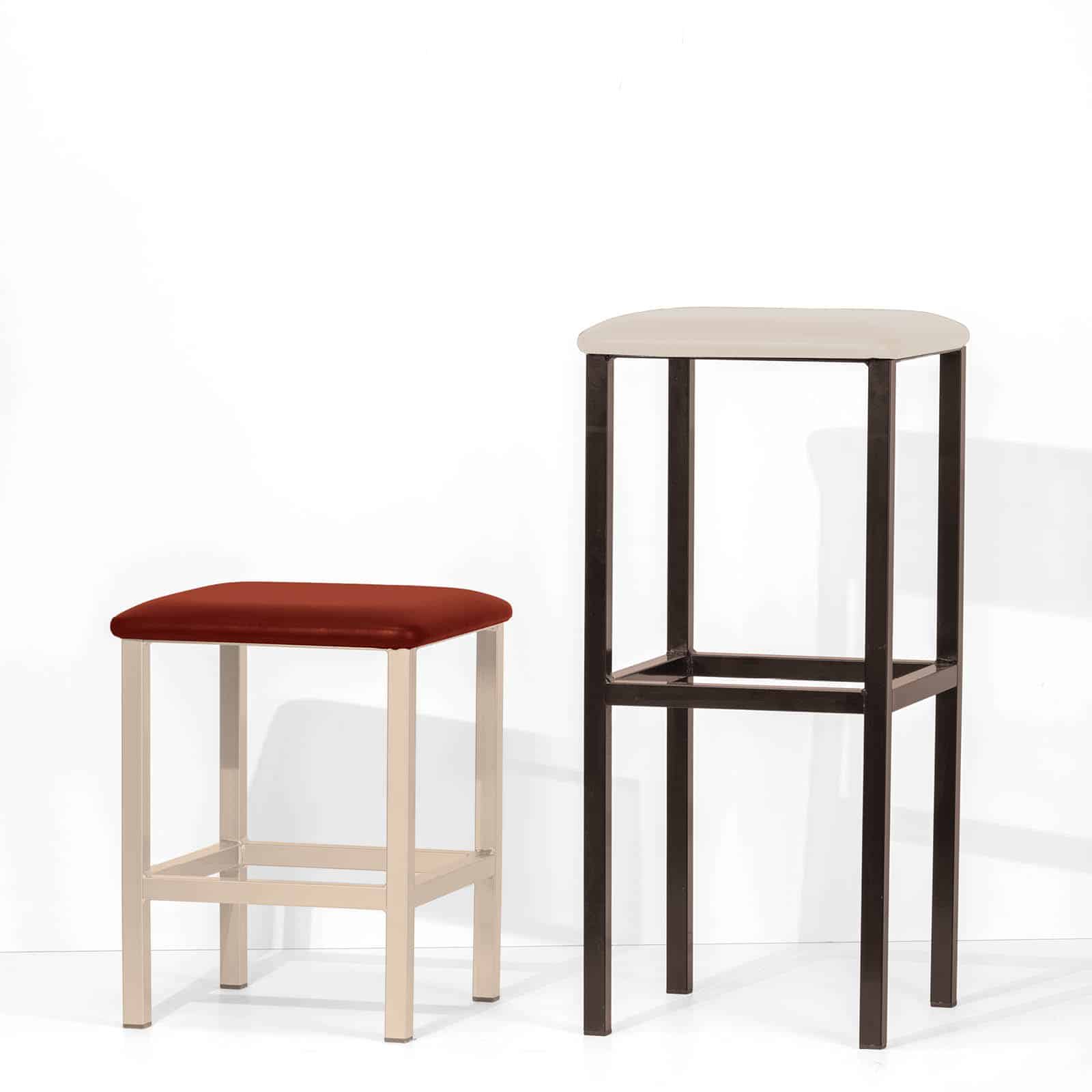 La struttura, realizzata in tubo quadro in acciaio 25×25 mm è caratterizzata da un aspetto “industriale”, che la rende particolarmente adatta ad ambienti dallo stile urban e moderno. Inoltre, lo sgabello Cubo è disponibile in 3 differenti altezze: 45, 65 e 78 cm, per soddisfare ogni esigenza di utilizzo.