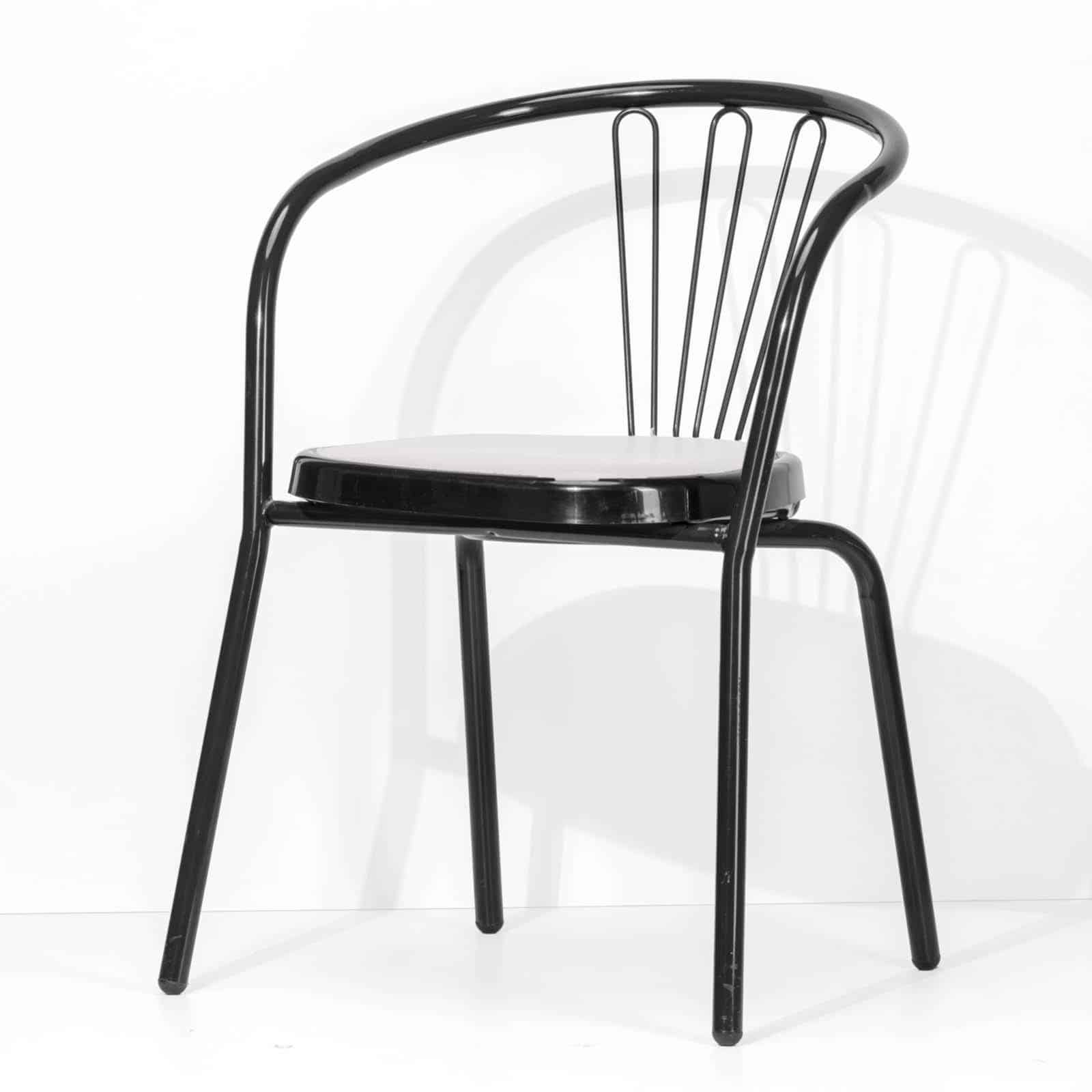 Lo schienale della sedia è arricchito da un elegante inserto in tondino metallico sagomato, che conferisce alla sedia un tocco di stile e un maggiore supporto alla schiena.