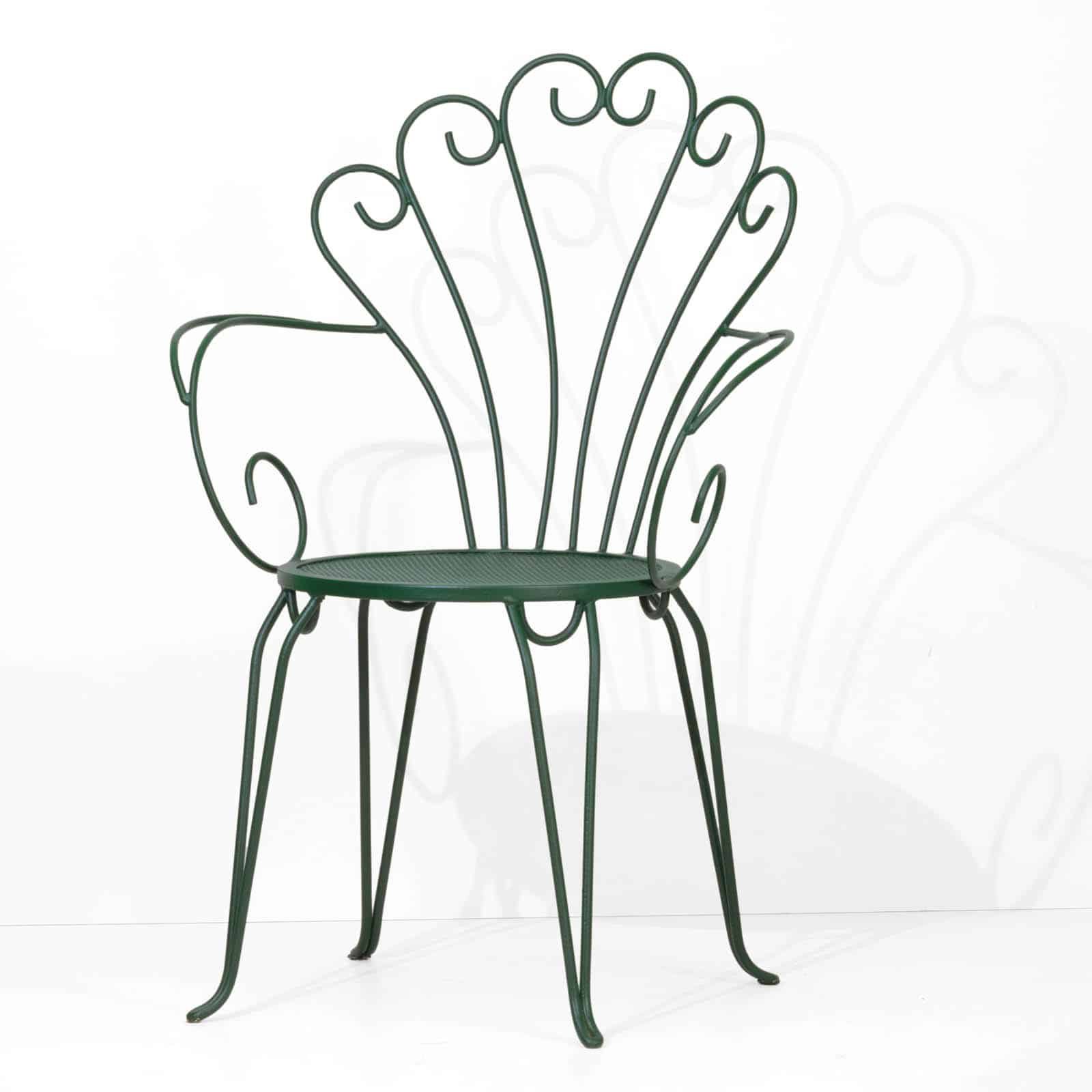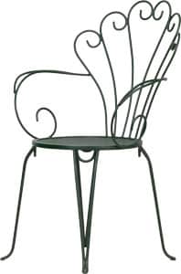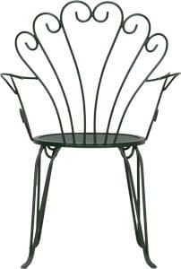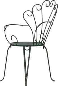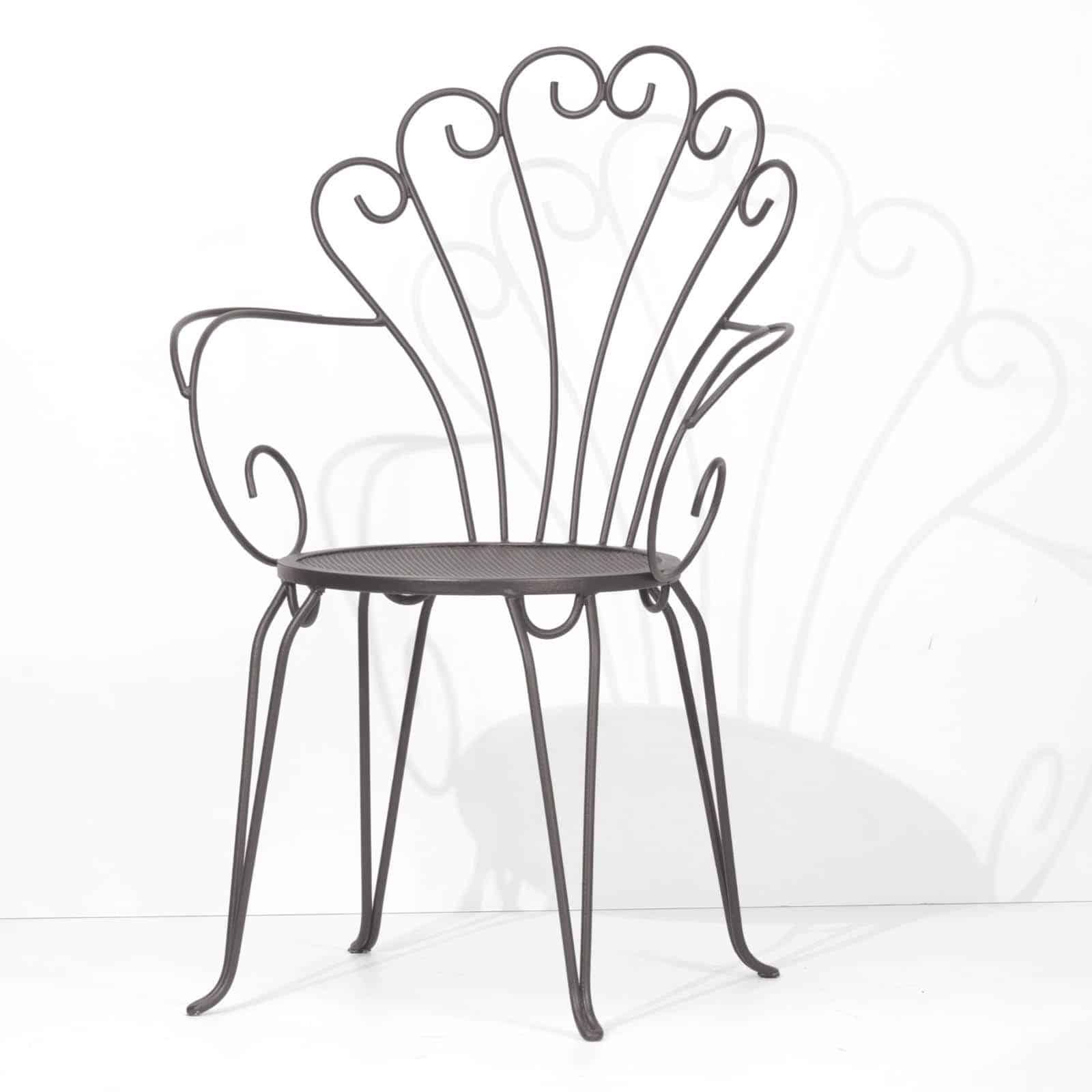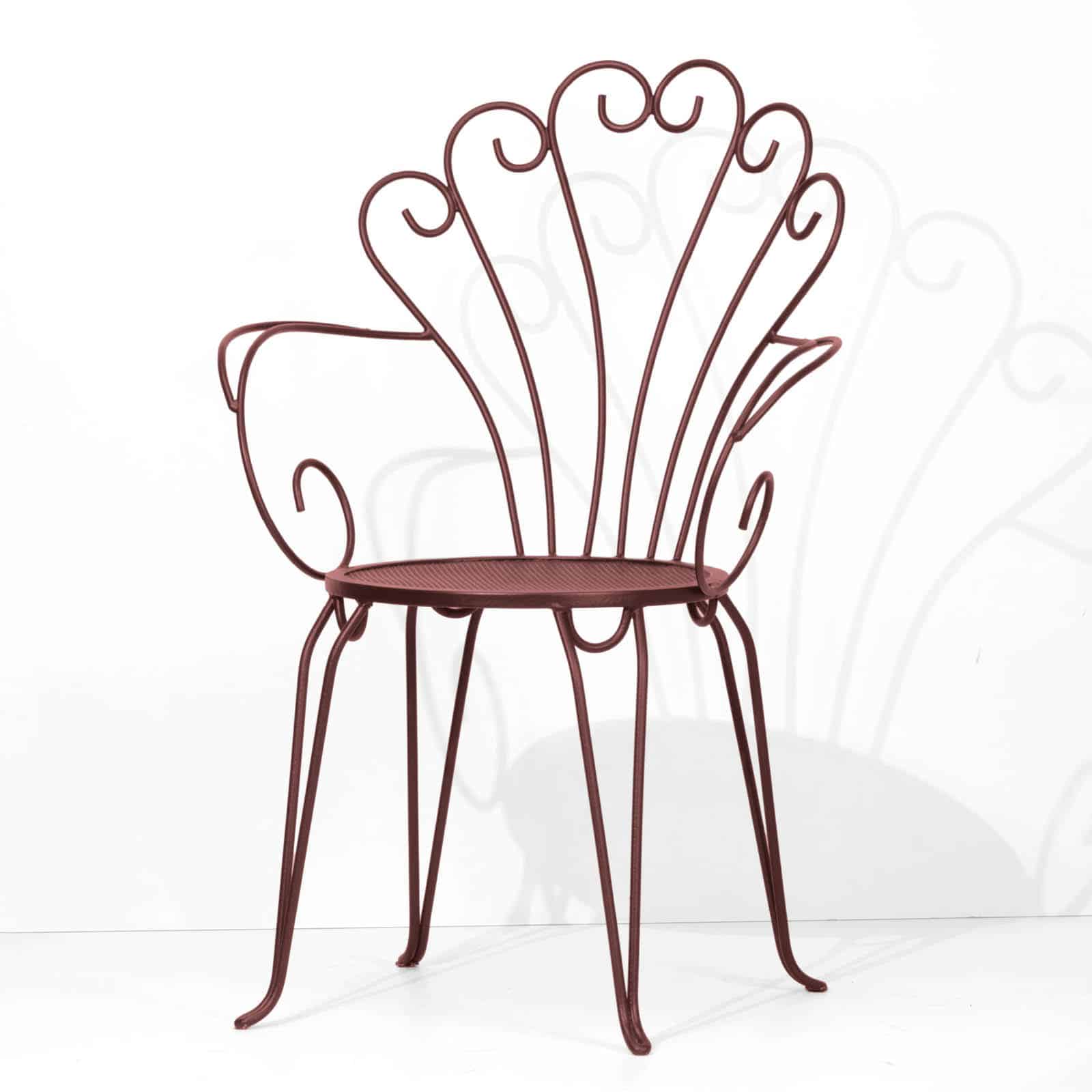 La sedia Edera, realizzata con tondini di metallo curvati di alta qualità, offre una struttura unica e raffinata, adatta sia per giardini che per bar e ristoranti.