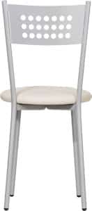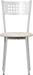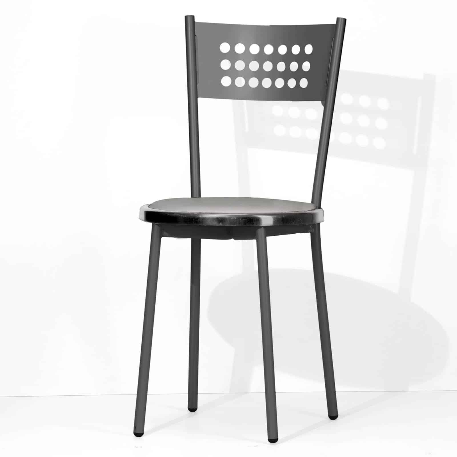 La Sedia Elena Lux, caratterizzata da una struttura in tubo d’acciaio ø 22mm e un distintivo schienale in lamiera forata lavorato a laser, combina alta qualità, design moderno e dettagli raffinati.