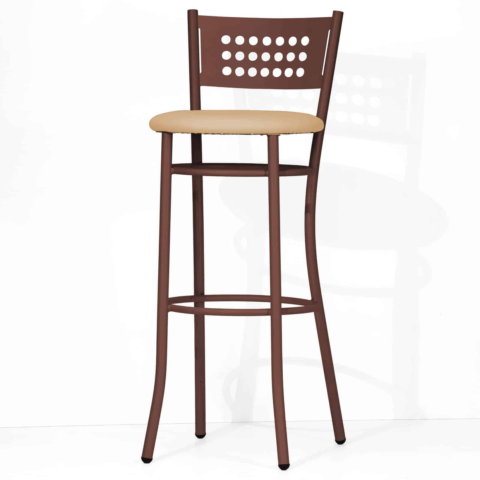 Lo Sgabello Elena Lux ha una struttura in tubo d’acciaio dal diametro di 25 millimetri ed è arricchita da uno schienale in lamiera forata, sagomato con cura e tagliato al laser per garantire una finitura impeccabile. L’altezza della seduta è in due misure: 63 e 78 cm