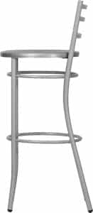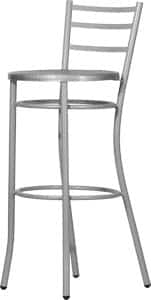 La struttura dello sgabello è realizzata in tubo d’acciaio dal diametro di 25 millimetri, saldato a 360° per garantire una resistenza e una stabilità ottimali. Lo schienale è arricchito da profili di ferro piatto curvato, per offrire maggiore supporto alla schiena.