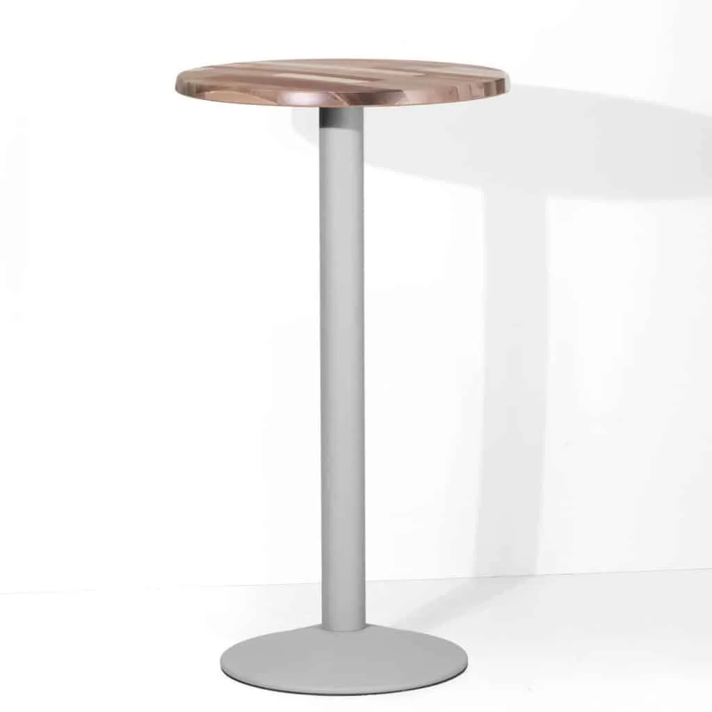 Disponibile in 28 colori e piani di alta qualità (Werzalit, HPL, Nobilitati), la base ha un diametro di 46 cm che garantisce la stabilità.