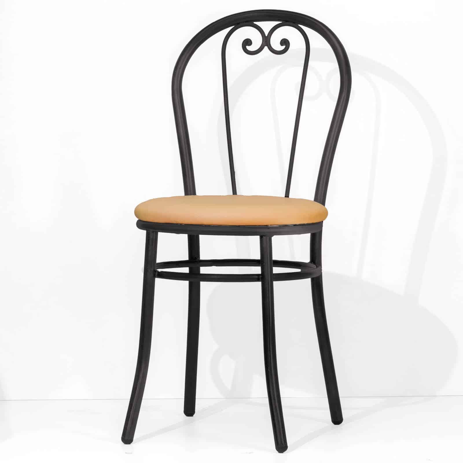 La sedia New Bistrot unisce l’eleganza classica con inserti in ferro battuto lavorato a mano nello schienale, offrendo un aspetto raffinato.