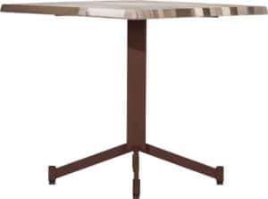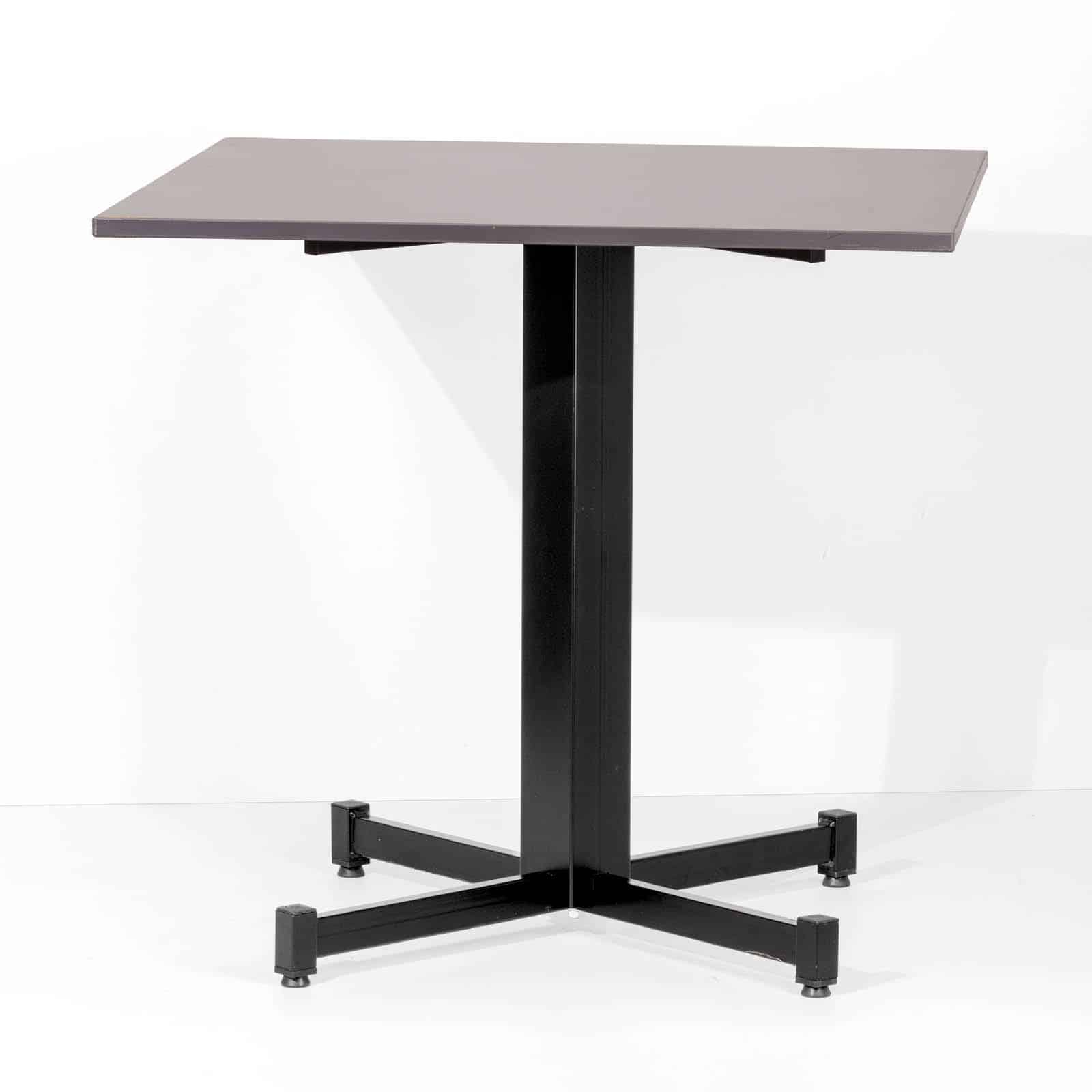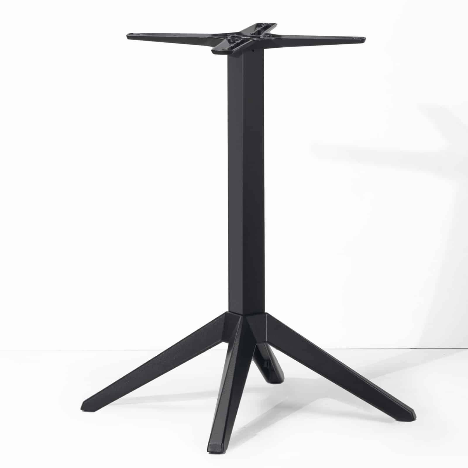 Il tavolo con base in acciaio è disponibile in tre versioni diverse, ognuna delle quali si adatta a specifiche esigenze: la versione A presenta i piedi perpendicolari allo stelo, con una base d’appoggio quadrata adatta a piani fino a 80×80 cm; la versione B prevede piedi regolabili su appoggio romboidale, per consentire l’utilizzo di piani rettangolari fino a 80×120 cm; la versione C, invece, presenta piedi inclinati di 30 gradi su base d’appoggio quadrata, adatta a piani fino a 80×80 cm.