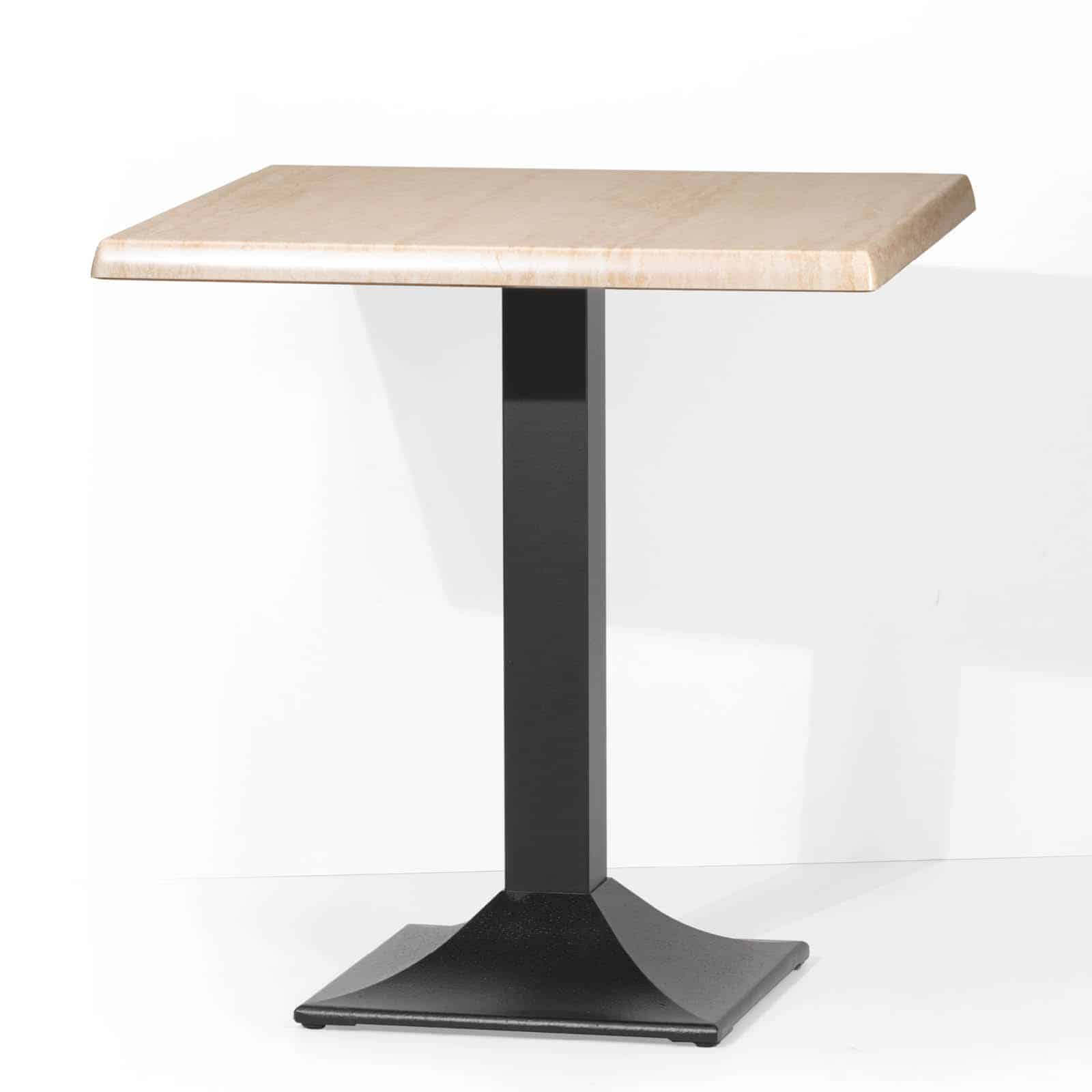 Il Tavolo Quadra Liscia è pensato per l’utilizzo in bar, ristoranti e hotel. La base d’appoggio è caratterizzata da un basamento in fusione di ghisa di base quadrata a tronco di piramide curva.