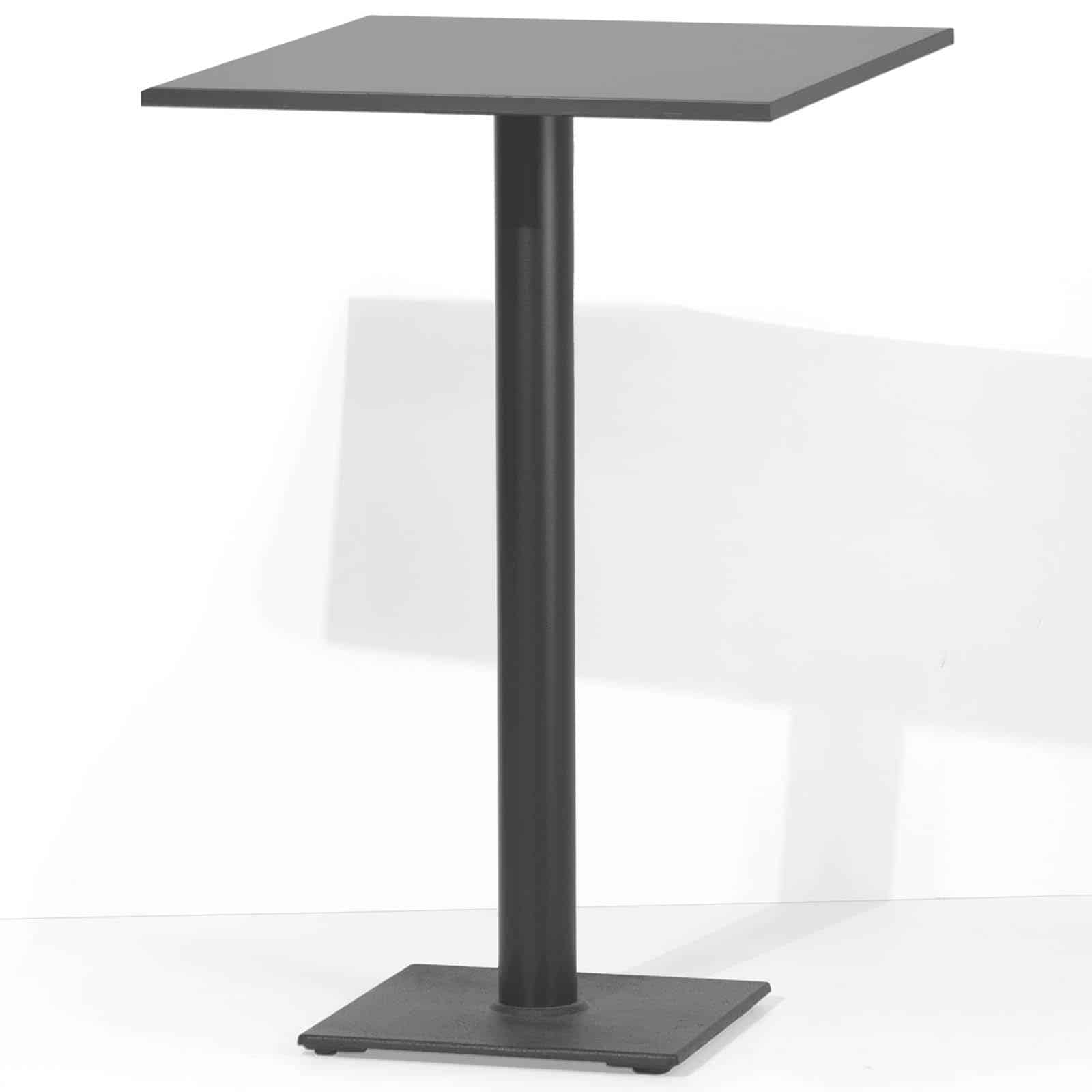 L’assemblaggio con barra filettata rende facile il montaggio. La base in metallo è disponibile in 28 colori e piani 70×70 cm sono di alta qualità, in Werzalit, HPL e Nobilitati.