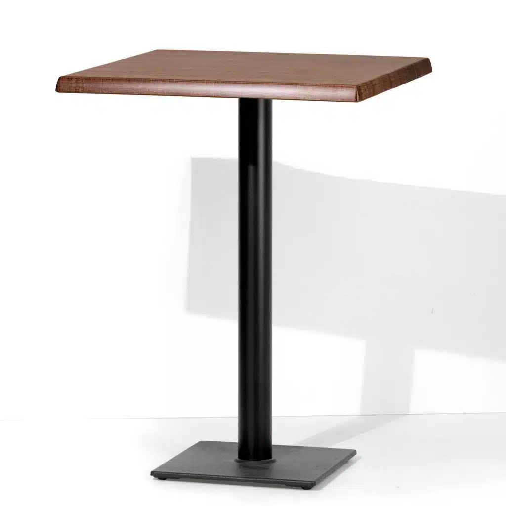 L’assemblaggio con barra filettata rende facile il montaggio. La base in metallo è disponibile in 28 colori e piani 70×70 cm sono di alta qualità, in Werzalit, HPL e Nobilitati.