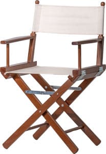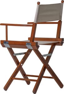 La sedia regista è l’emblema del cinema e del teatro, utilizzata dagli operatori delle riprese e dai registi stessi. La sua struttura è in faggio massello, resistente e leggera allo stesso tempo. La sedia è dotata di comodi braccioli per garantire il massimo comfort, mentre la seduta e lo schienale sono realizzati in tessuto facilmente sostituibile per una pulizia semplice e rapida.