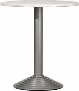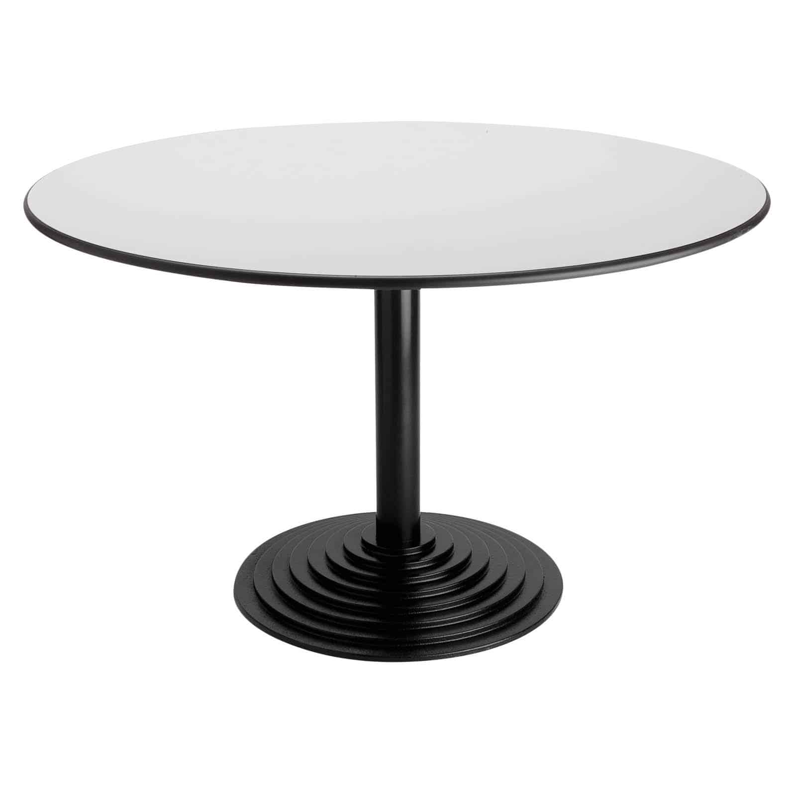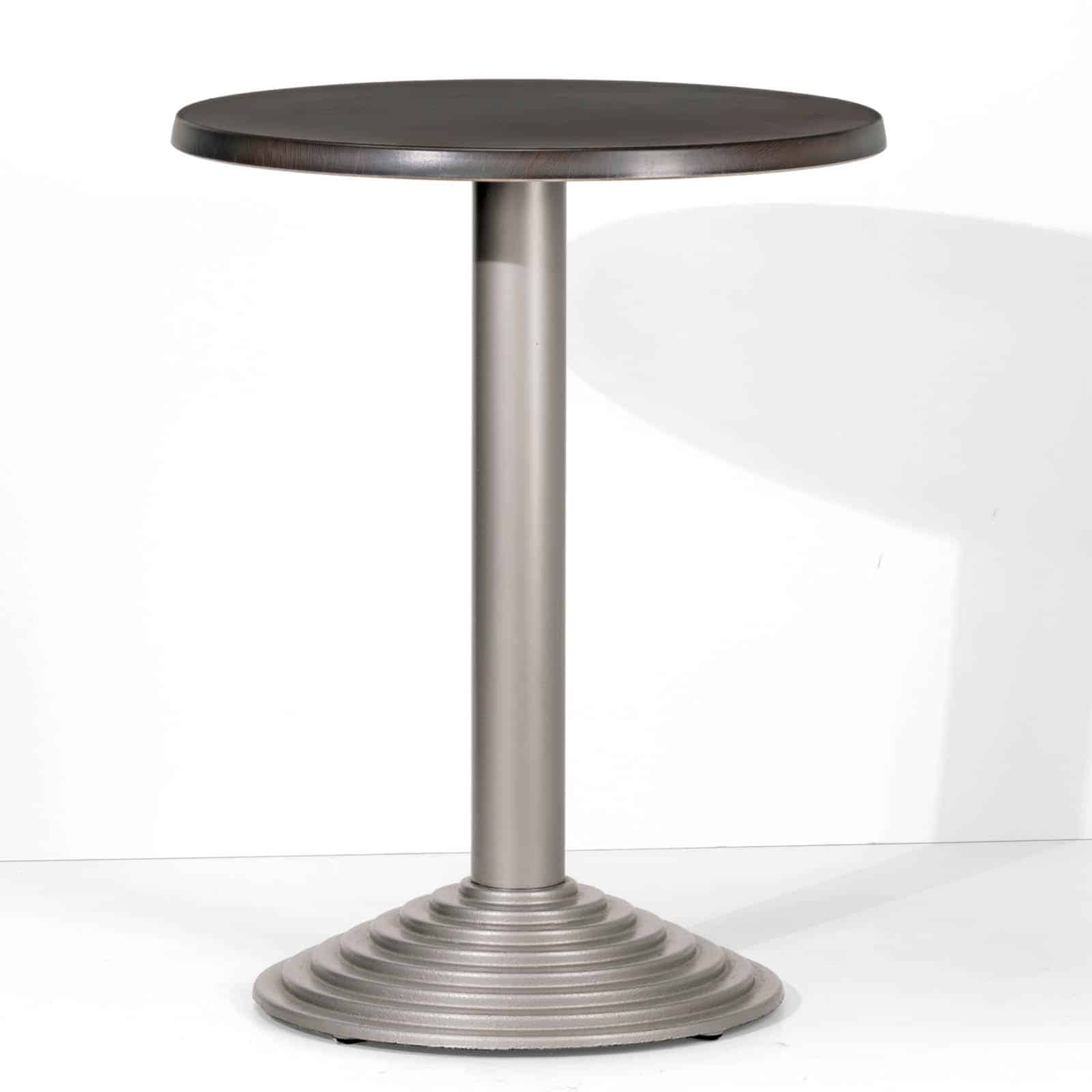 La base del tavolo Tonda Scalini è caratterizzata da un basamento a forma tronco conica a scalini, realizzata in fusione di ghisa, robusta e resistente.