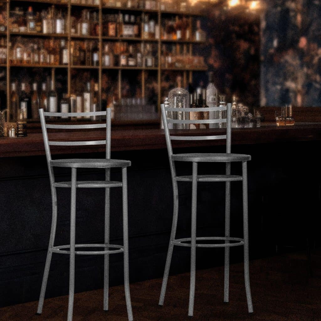 Sgabelli in Acciaio con Seduta in Multistrato: Questi sgabelli presentano una seduta in multistrato, materiale robusto e durevole che aggiunge un tocco di calore e naturalezza al design. Il multistrato è noto per la sua resistenza e durabilità, offrendo un prodotto che durerà nel tempo.