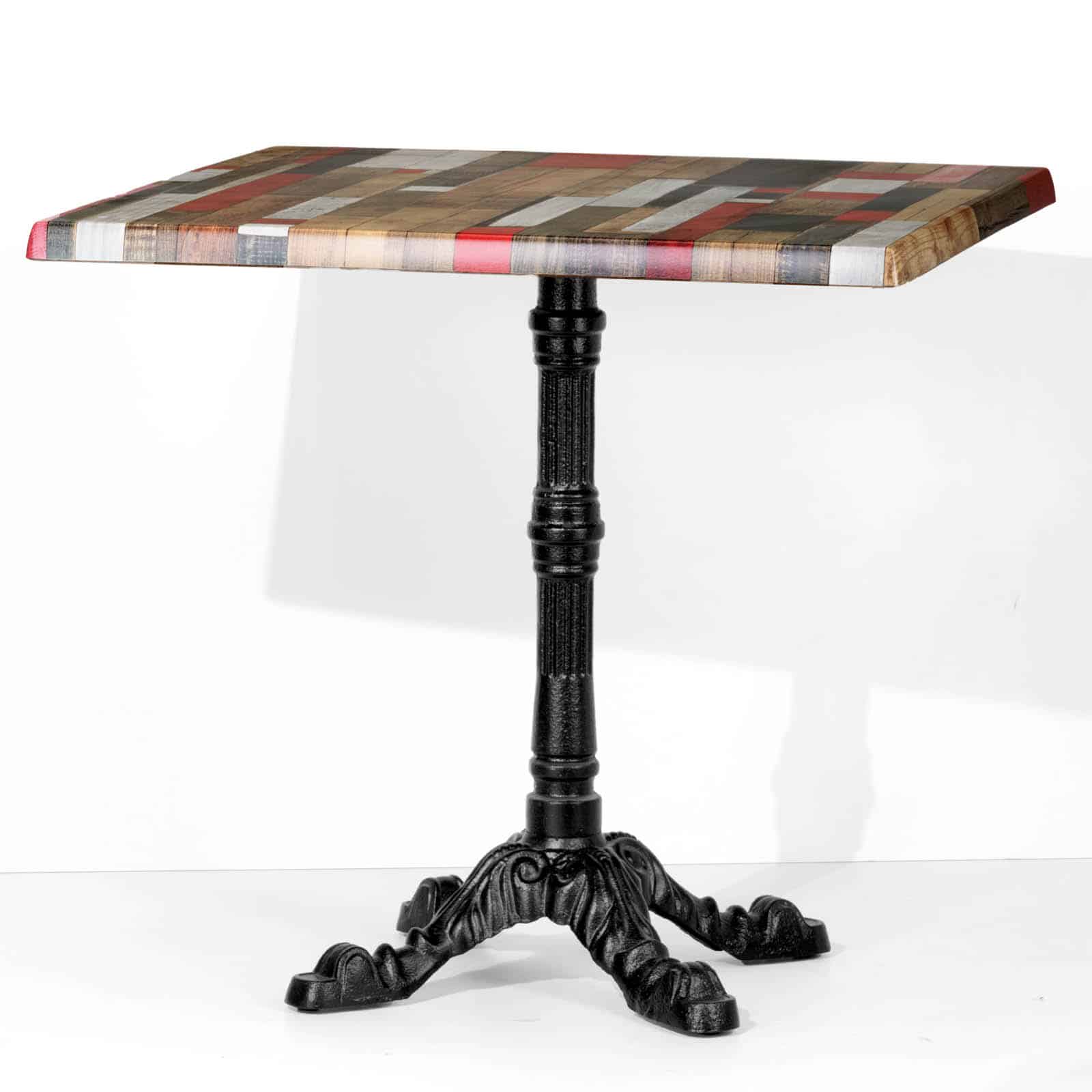 Il tavolo Bistrot 4 piedi con base e stelo in fusione di ghisa è un classico del design, adatto per ambienti di ristorazione e bar. La struttura è composta da una base a stelo in fusione di ghisa, resistente e robusta, disponibile in 28 colorazioni diverse che si adattano ad ogni esigenza di arredamento. Il piano del tavolo viene fissato tramite una piastra a crociera in pressofusione di alluminio posta sulla sommità dello stelo.