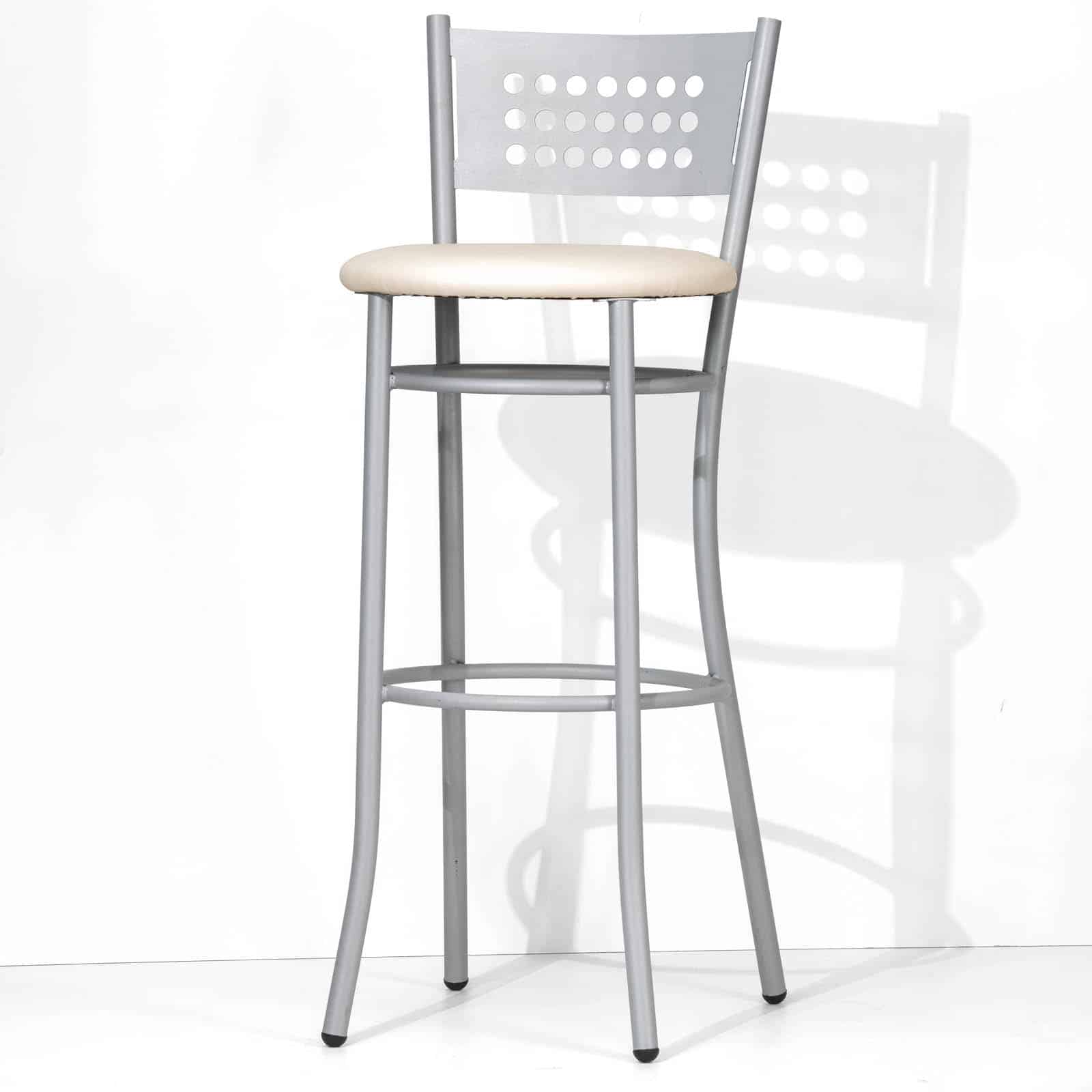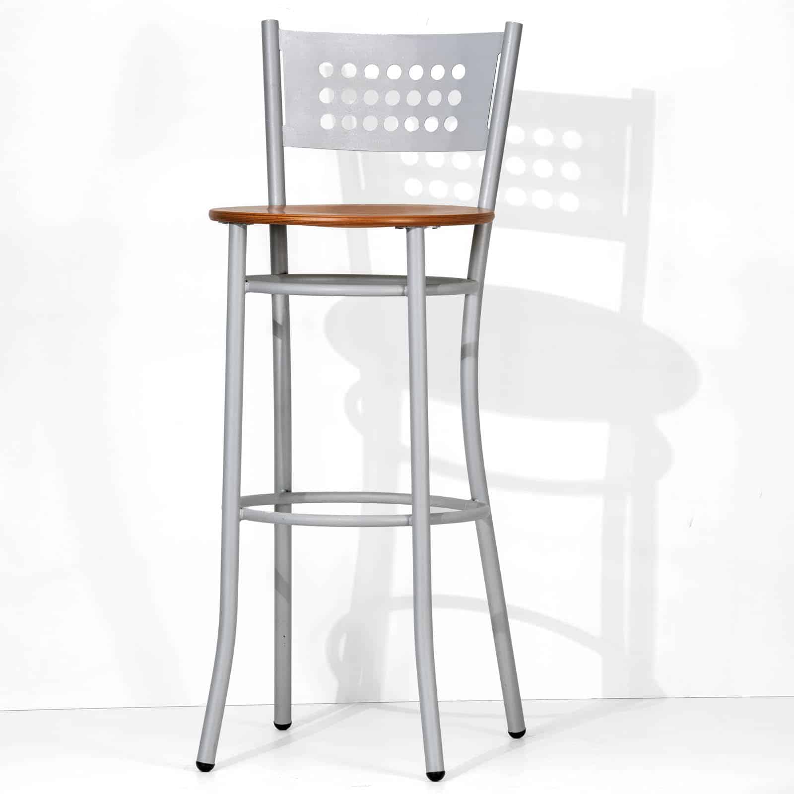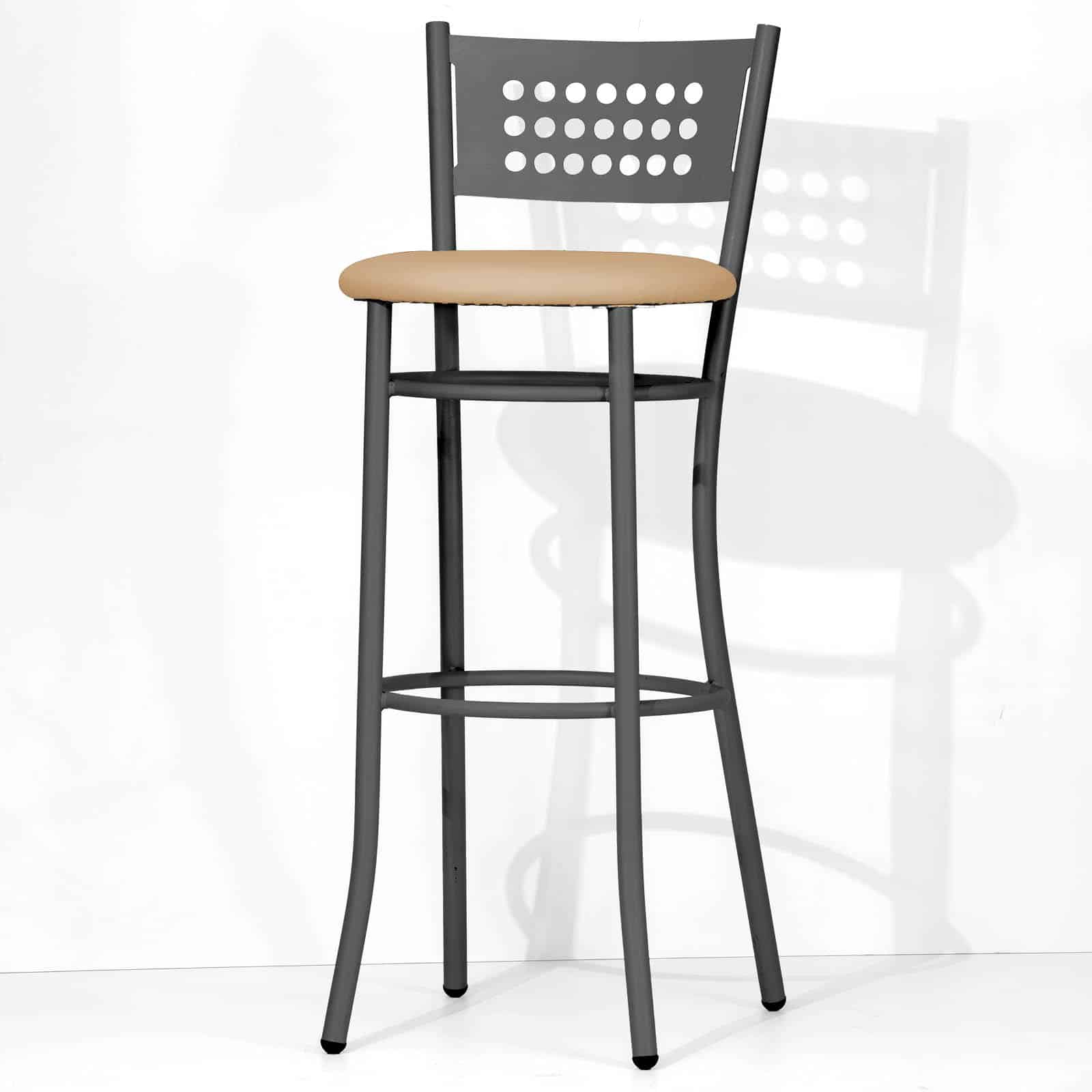 Lo Sgabello Elena Lux ha una struttura in tubo d’acciaio dal diametro di 25 millimetri ed è arricchita da uno schienale in lamiera forata, sagomato con cura e tagliato al laser per garantire una finitura impeccabile. L’altezza della seduta è in due misure: 63 e 78 cm