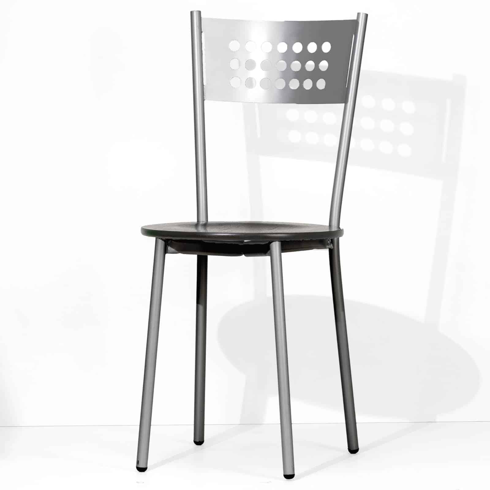 La Sedia Elena Lux, caratterizzata da una struttura in tubo d’acciaio ø 22mm e un distintivo schienale in lamiera forata lavorato a laser, combina alta qualità, design moderno e dettagli raffinati.