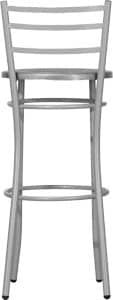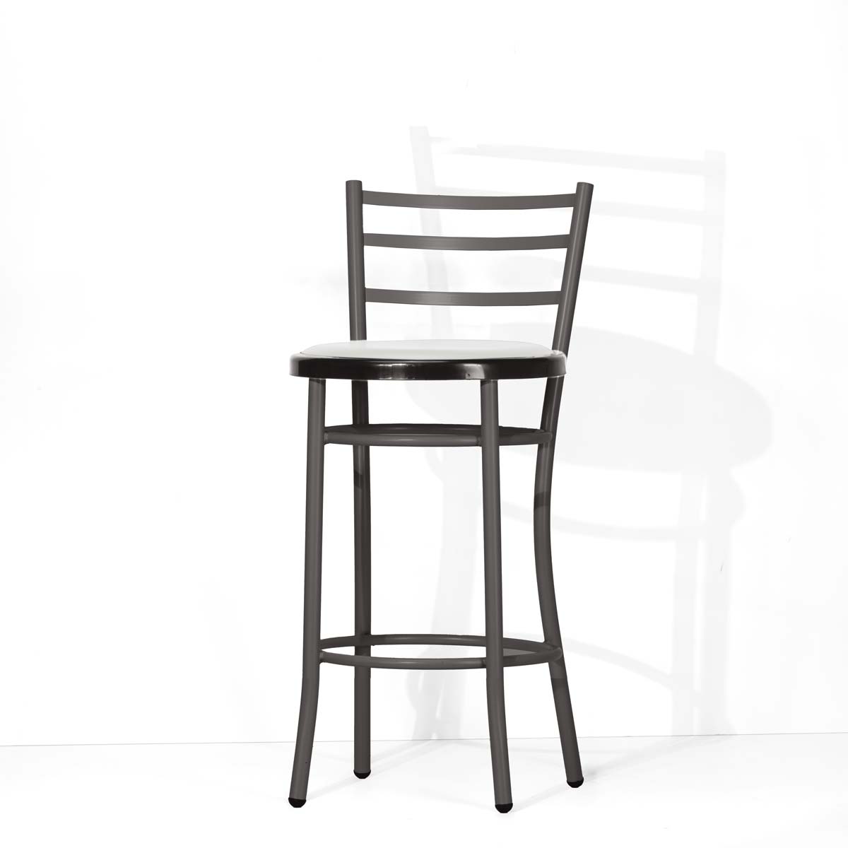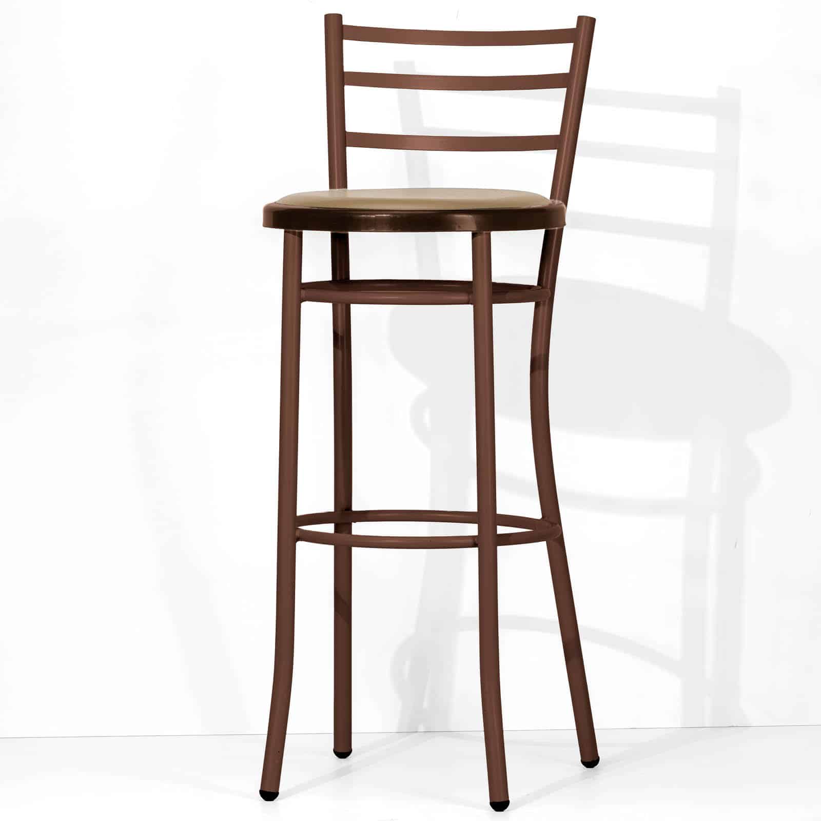 La struttura dello sgabello è realizzata in tubo d’acciaio dal diametro di 25 millimetri, saldato a 360° per garantire una resistenza e una stabilità ottimali. Lo schienale è arricchito da profili di ferro piatto curvato, per offrire maggiore supporto alla schiena.