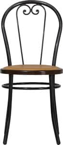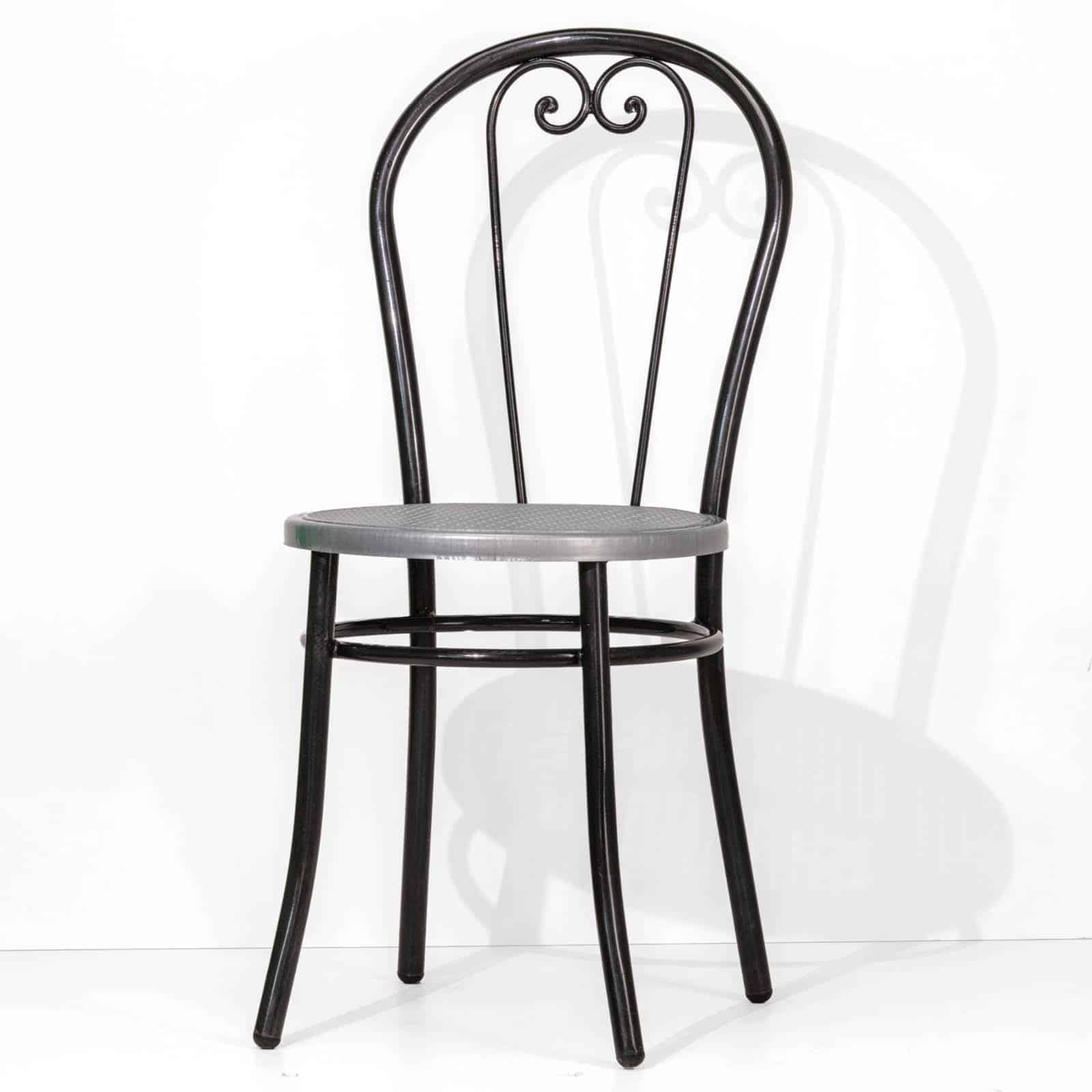 La sedia New Bistrot unisce l’eleganza classica con inserti in ferro battuto lavorato a mano nello schienale, offrendo un aspetto raffinato.