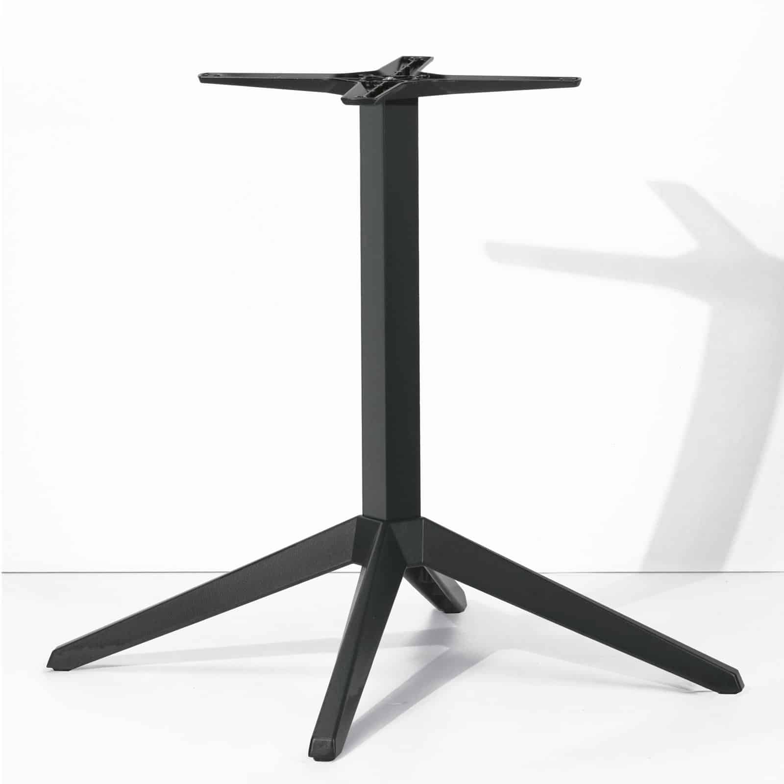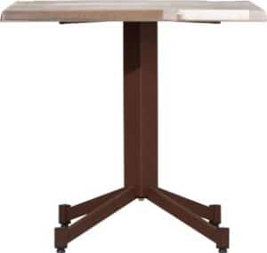 Il tavolo con base in acciaio è disponibile in tre versioni diverse, ognuna delle quali si adatta a specifiche esigenze: la versione A presenta i piedi perpendicolari allo stelo, con una base d’appoggio quadrata adatta a piani fino a 80×80 cm; la versione B prevede piedi regolabili su appoggio romboidale, per consentire l’utilizzo di piani rettangolari fino a 80×120 cm; la versione C, invece, presenta piedi inclinati di 30 gradi su base d’appoggio quadrata, adatta a piani fino a 80×80 cm.