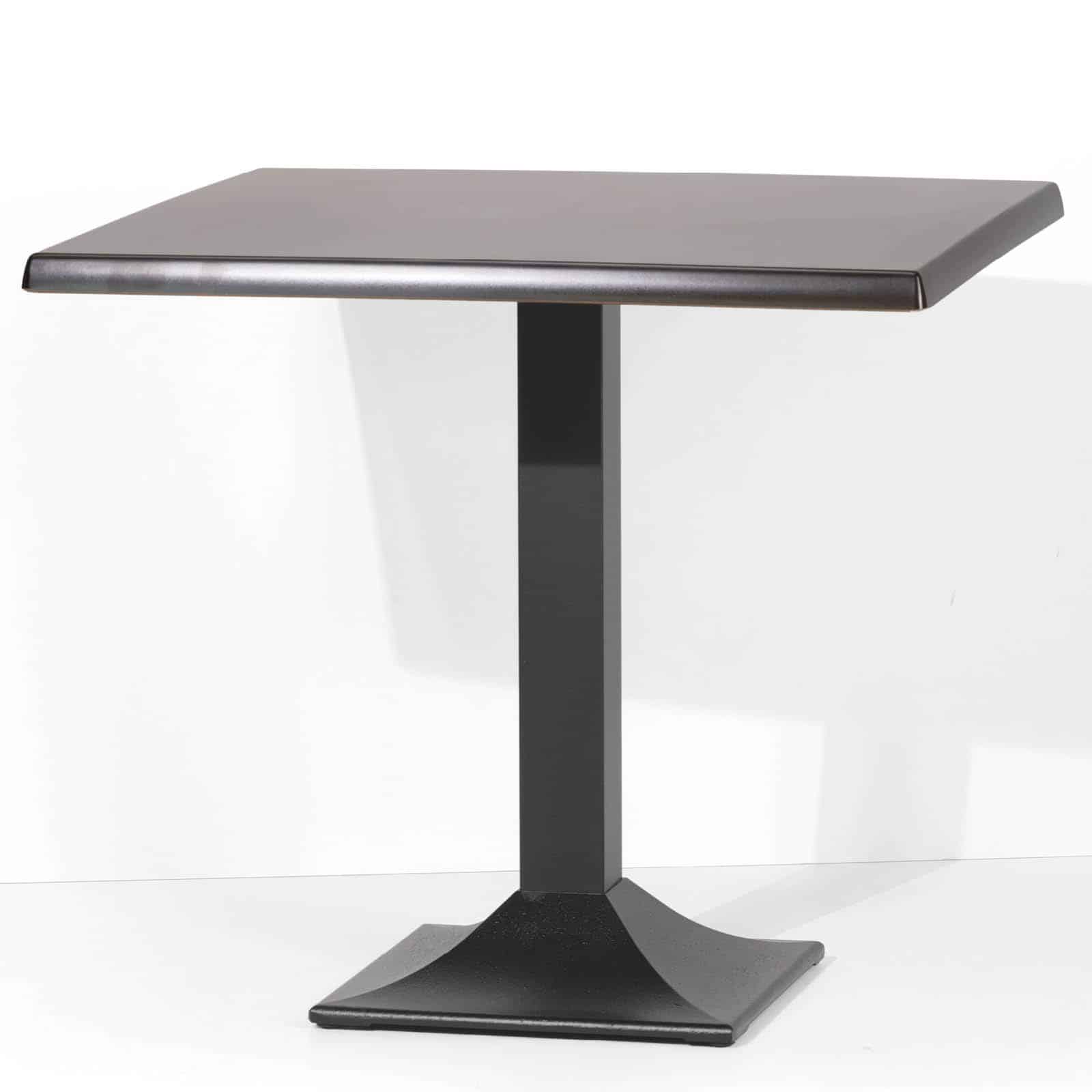 Il Tavolo Quadra Liscia è pensato per l’utilizzo in bar, ristoranti e hotel. La base d’appoggio è caratterizzata da un basamento in fusione di ghisa di base quadrata a tronco di piramide curva.