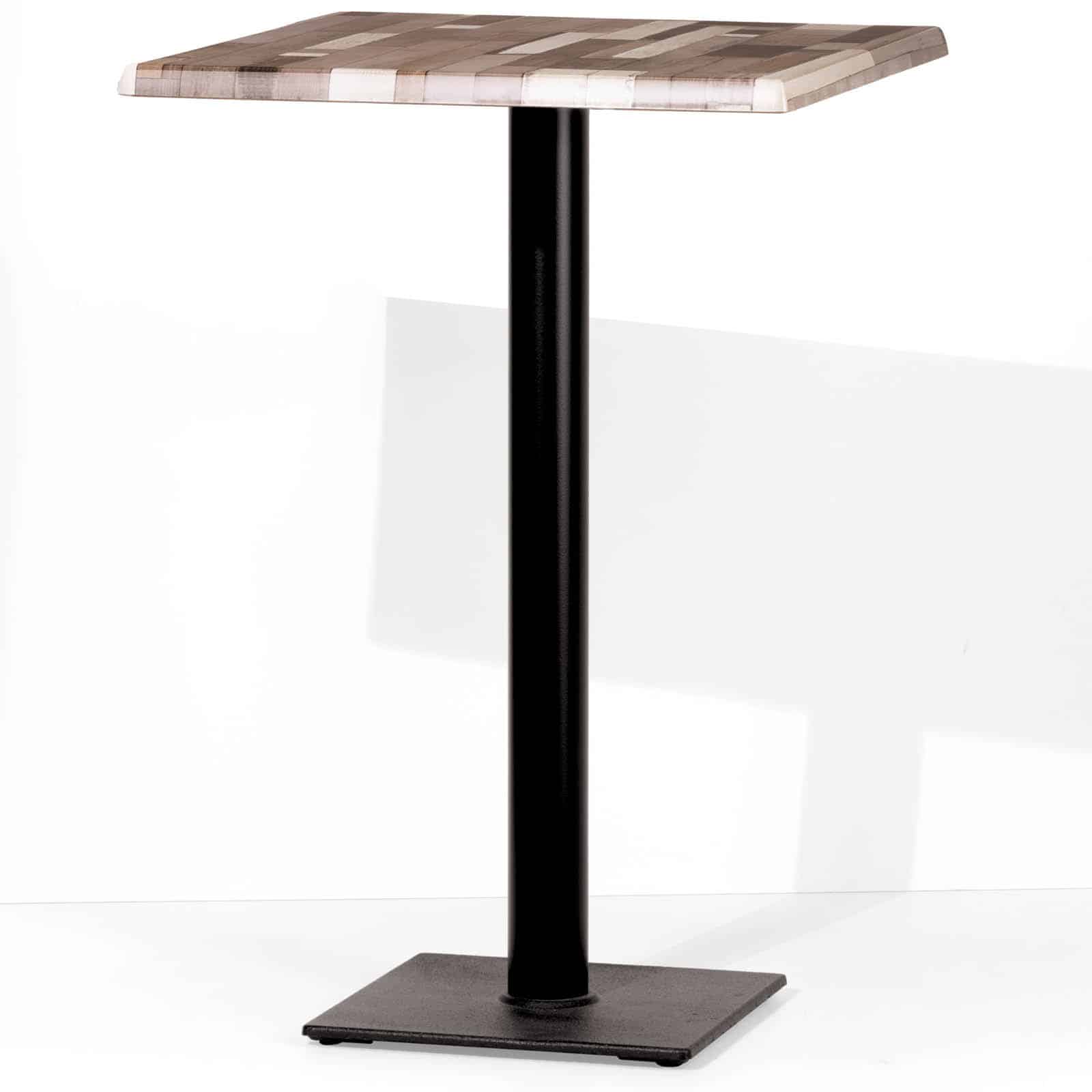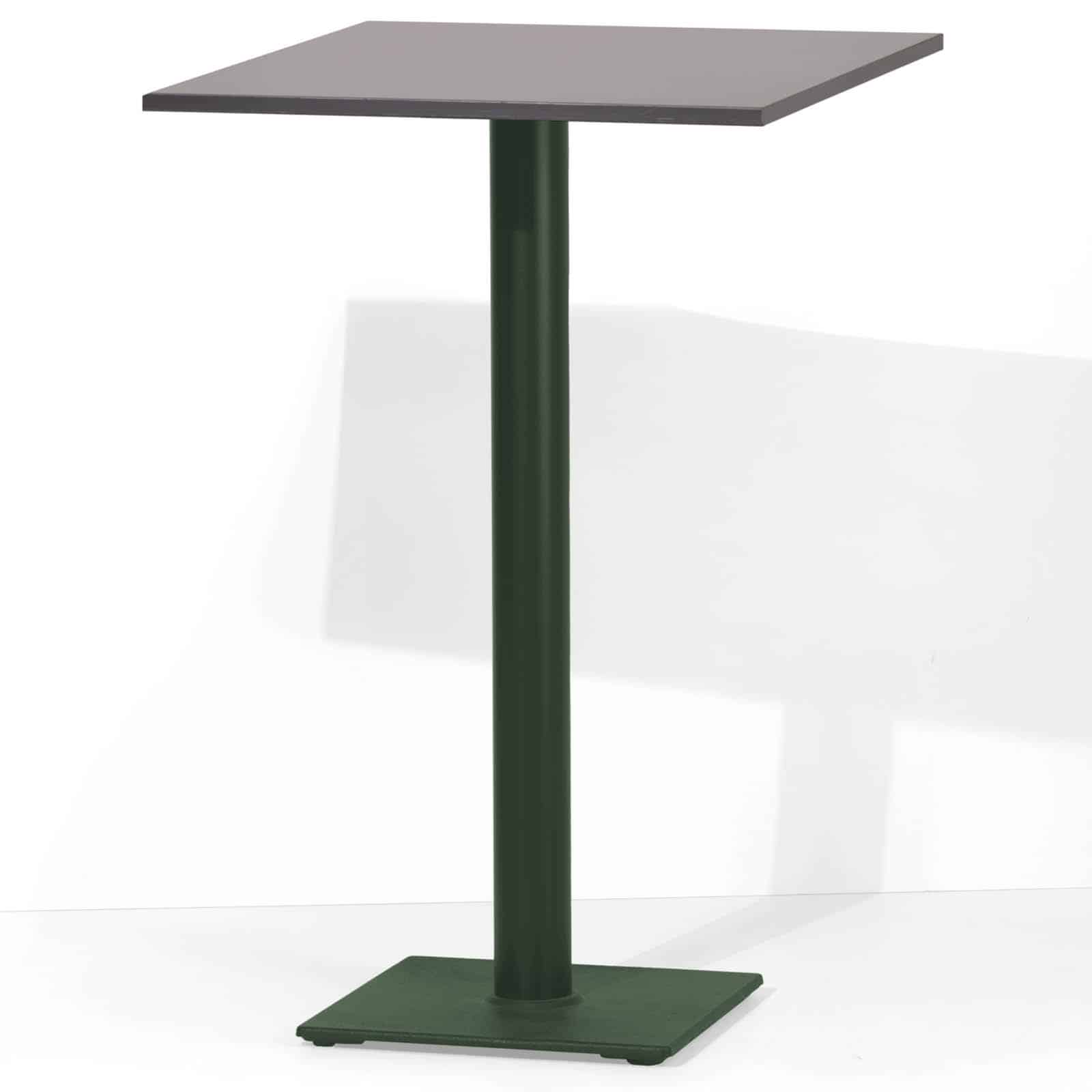 L’assemblaggio con barra filettata rende facile il montaggio. La base in metallo è disponibile in 28 colori e piani 70×70 cm sono di alta qualità, in Werzalit, HPL e Nobilitati.