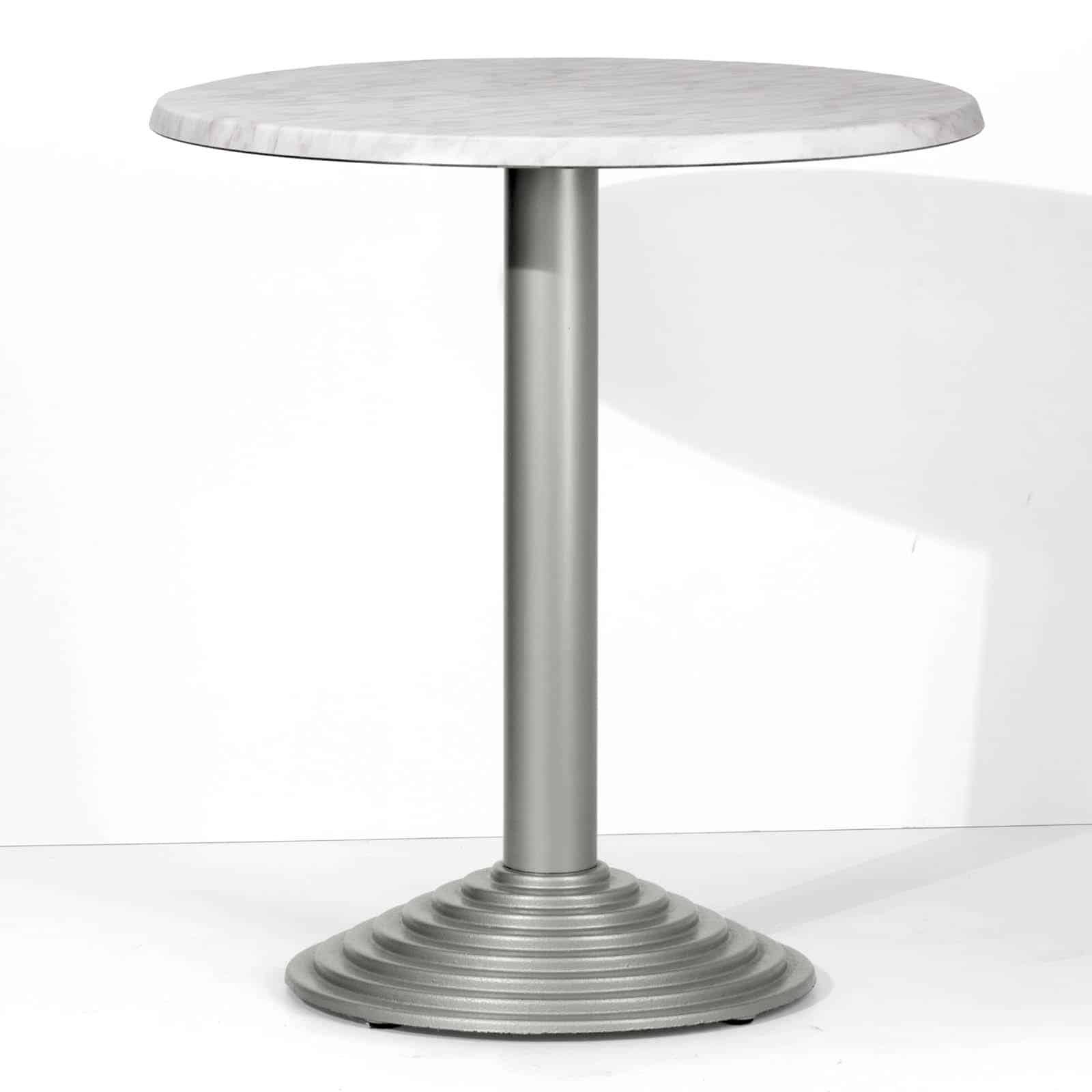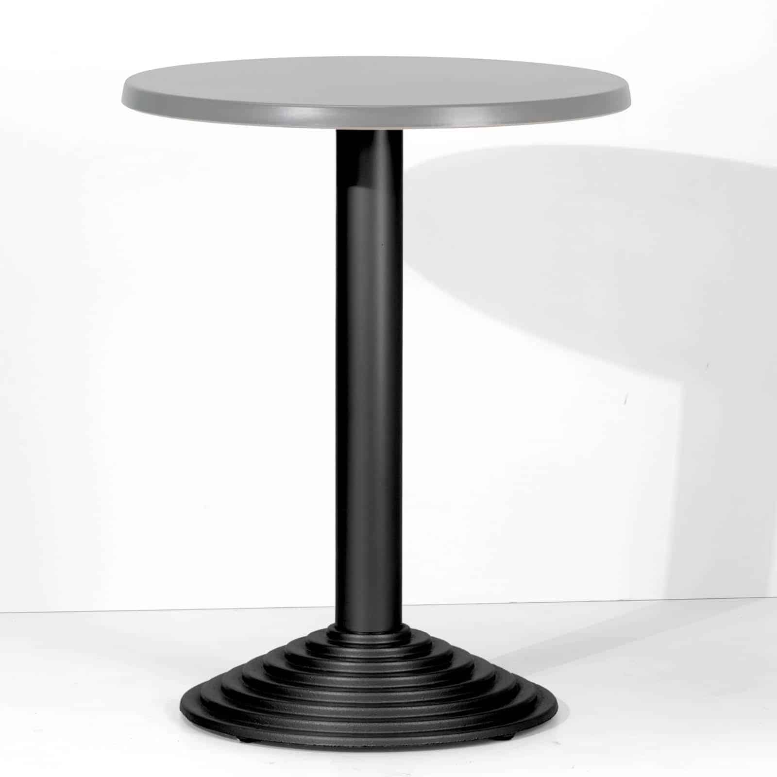 La base del tavolo Tonda Scalini è caratterizzata da un basamento a forma tronco conica a scalini, realizzata in fusione di ghisa, robusta e resistente.